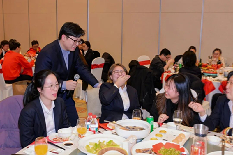 席间,美酒佳肴相伴,欢声笑语萦绕。全体员工举杯共饮,畅谈过往的奋斗与收获,畅想未来的机遇与挑战。温馨的团圆氛围中,每一张笑脸都洋溢着对过去一年的欣慰与对新一年的憧憬。